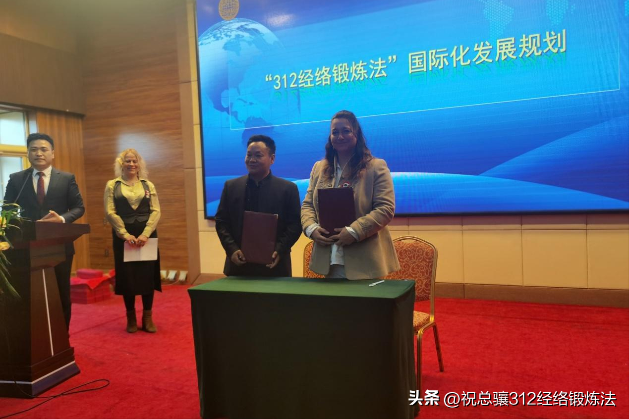 夏中杰(左)匈牙利312推广中心负责人Eory Emese女士(右)签署了312经络锻炼法国际化发展规划与海外312团队战略框架书。